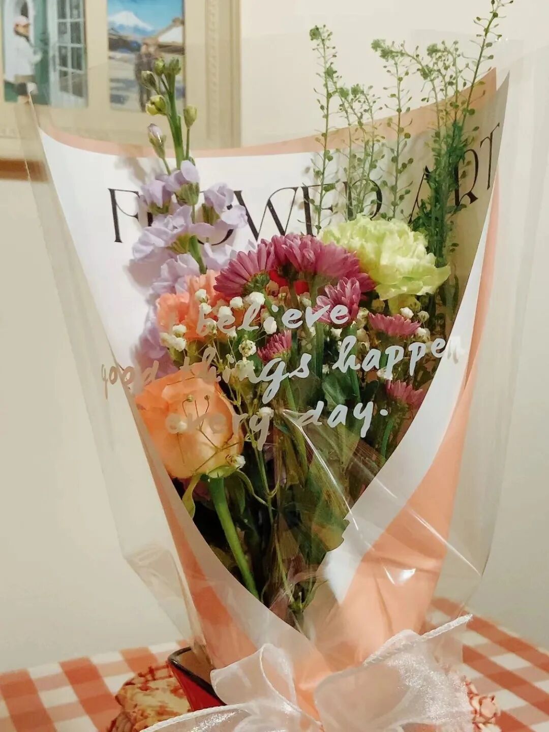 照相馆隔壁是家花店。本来我没打算买花的。应该是被店门口的一句广告语吸引了,或者说是提醒了。