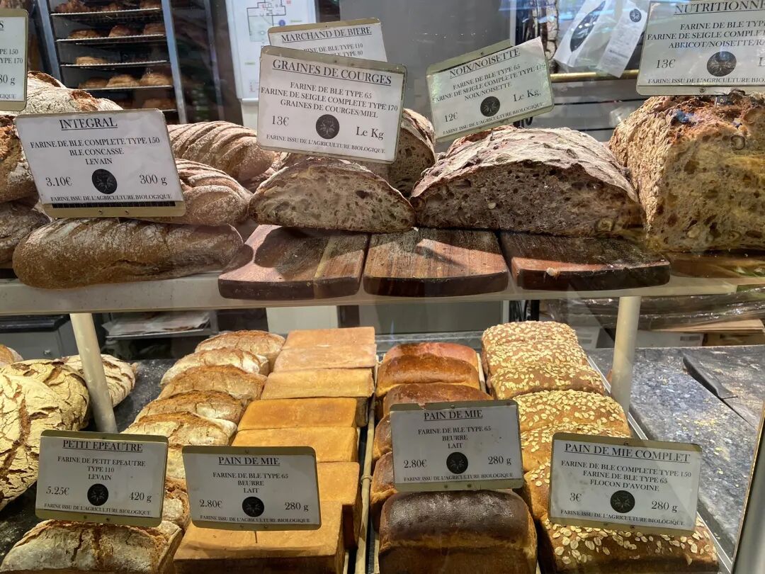 后来我们去一家“2018年可颂排名第一”的面包店买面包,发现面包店前很小的一个广场,也是一个市集。