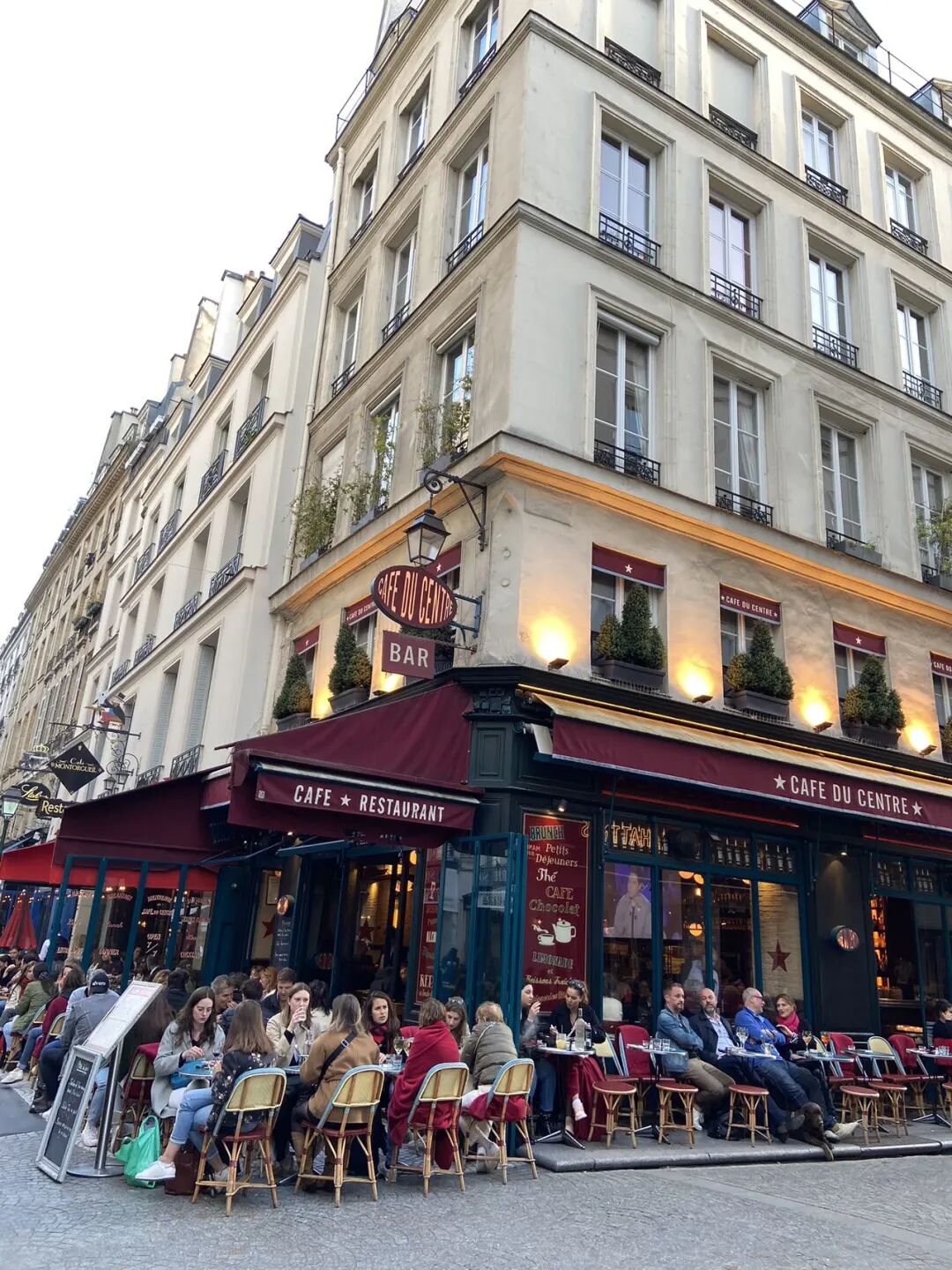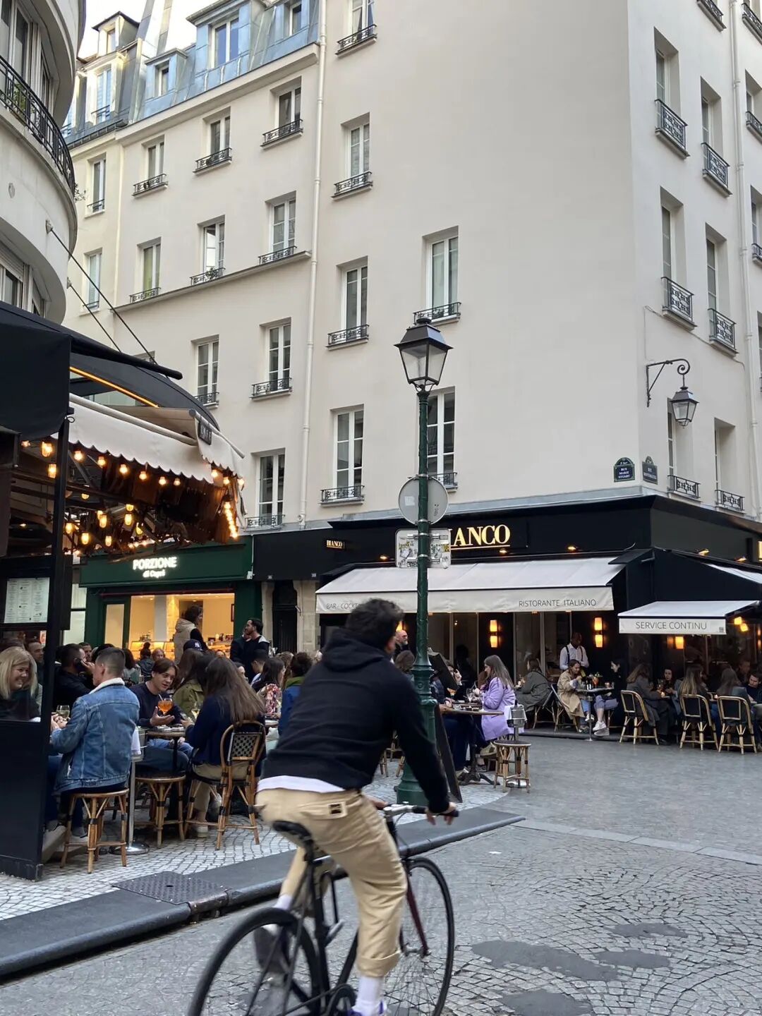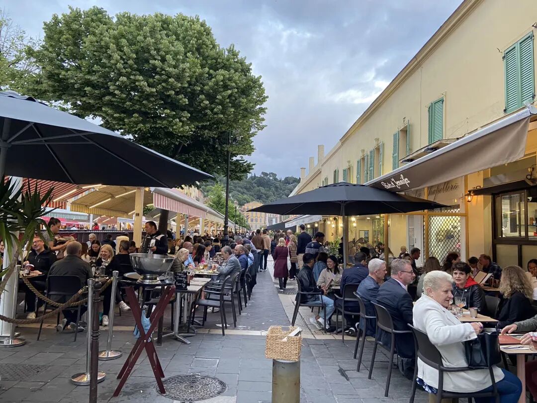 路边咖啡馆餐馆也是巴黎一景。好像每家路边餐厅都有室内室外桌,现在是巴黎的春天,人们更愿意在室外用餐,面朝马路,喝酒喝咖啡聊天发呆。