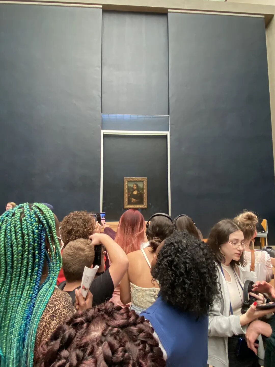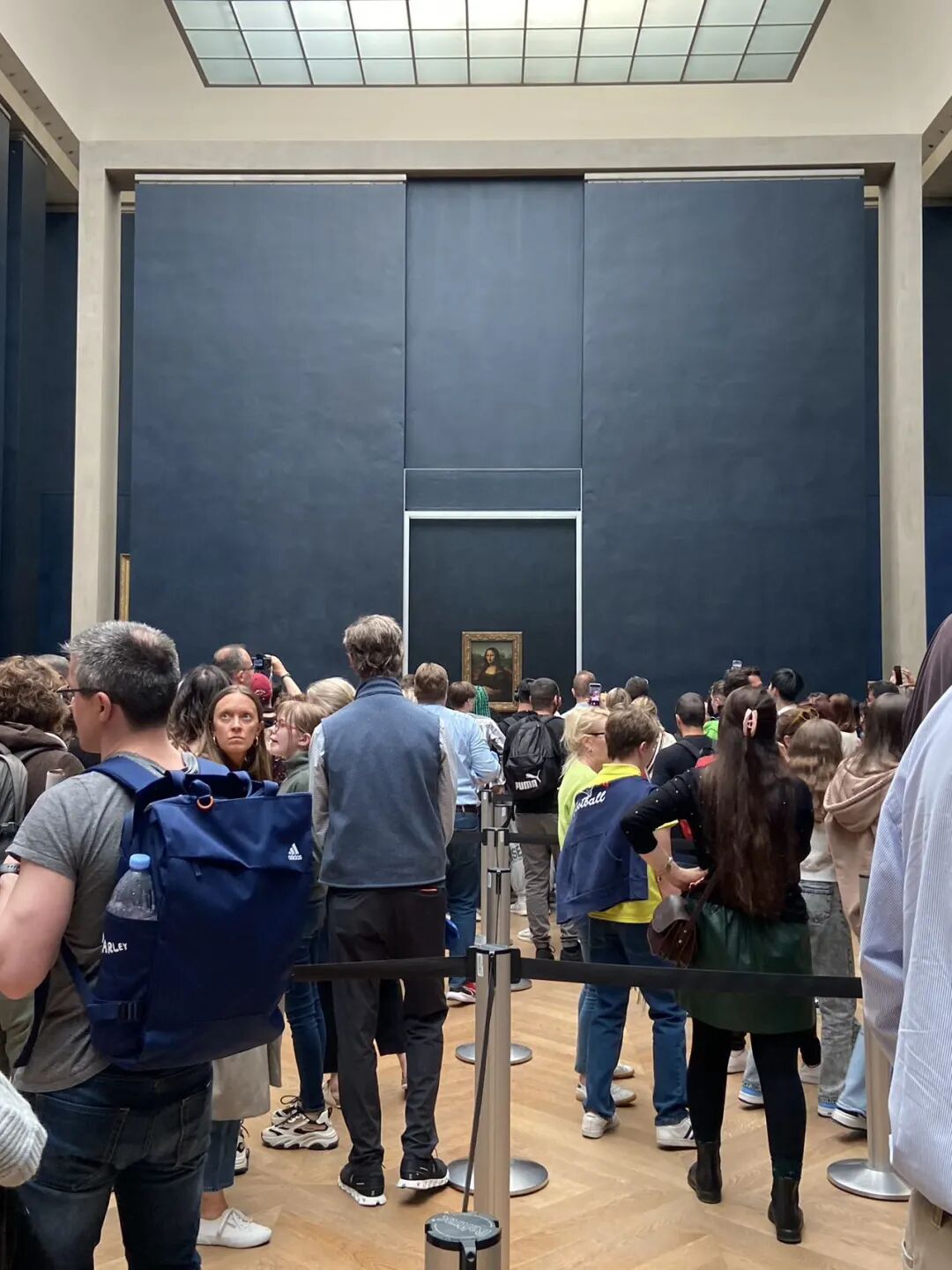 卢浮宫里观光客汹涌,看蒙娜丽莎的游客排成长队。