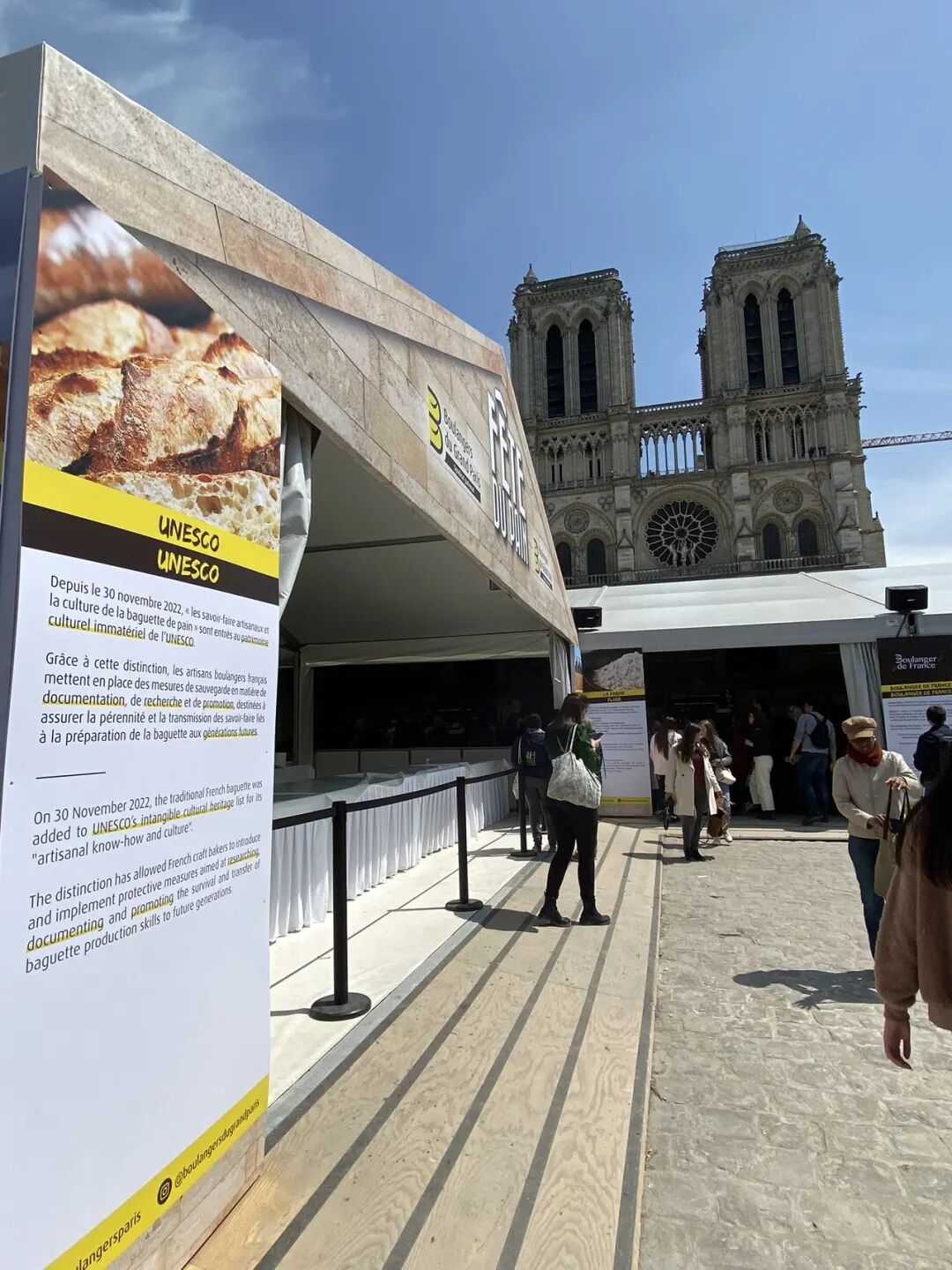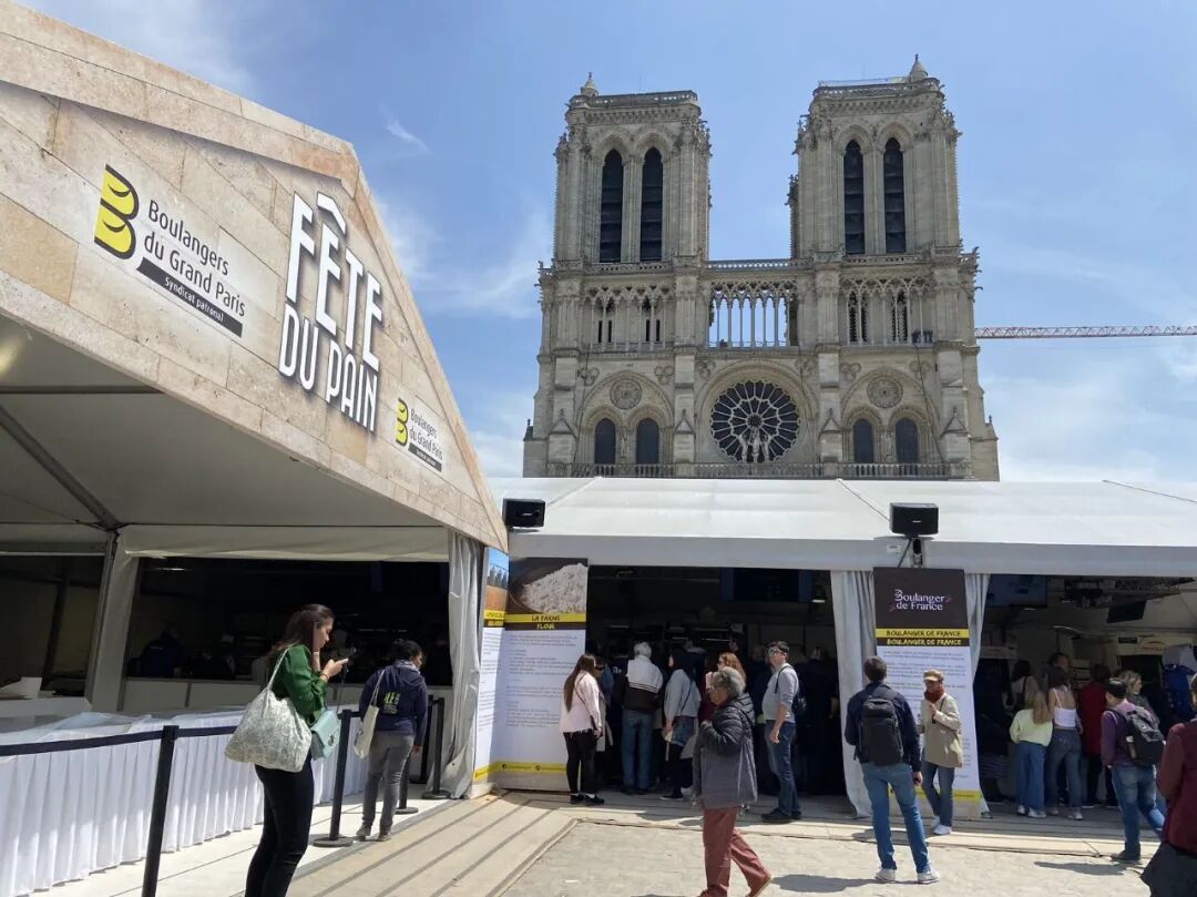 巴黎圣母院前,正在举办“面包节”。据说,面包师们可以报名参加比赛,交流厨艺。