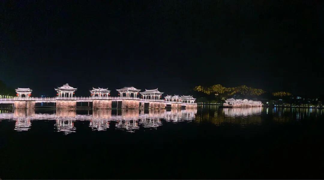 在别处,灯光秀可能就是现代化电光灯火的秀场。在潮州,因了韩山、韩江、古桥,灯光就演绎出了动人的故事,那变幻的色彩,廊桥在夜色中、韩江上的倒影,韩山静默,似乎都在讲述着这座古城的历史。