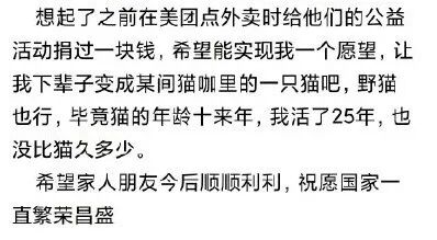 交待后事“如果我身上还有哪个部门能用的,都拿走吧。请把我烧成灰埋到地里,好歹能贡献点养分。”