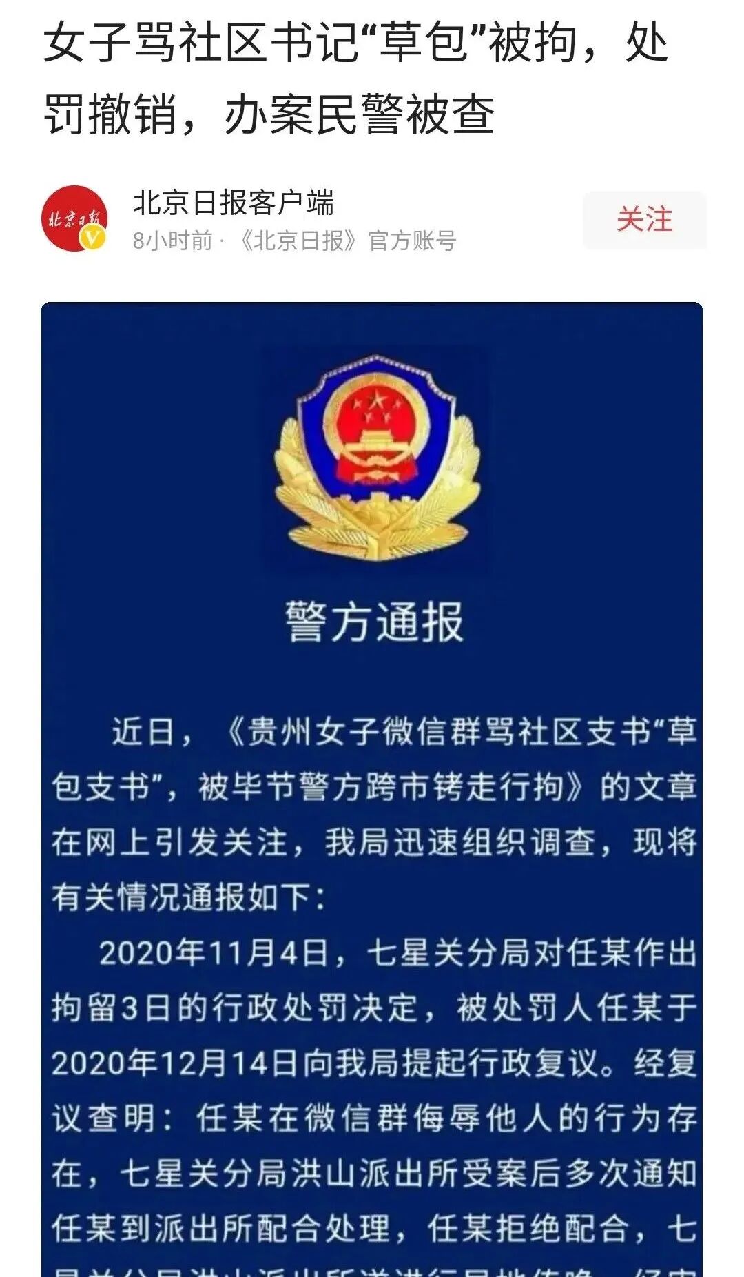 结果被某派出所从贵阳家里抓到200多公里外的毕节,行政拘留三天。不仅对她动用了手铐,不给喝水,恐吓要关死她。任女士说要找律师,还被嘲笑“港片看多了”。