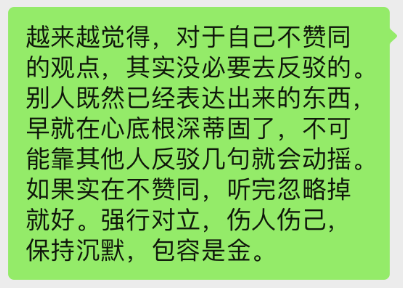 看完上面那段话,就检视了一番内心。2021年应该立一个Flag:再遇到这样的读者,直接拉黑,“保持沉默”,沉默不是金,包容才是。