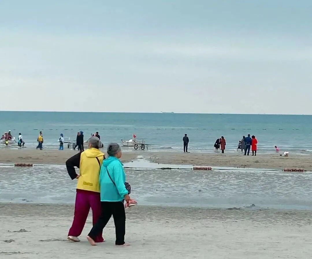 不说极致细腻的沙滩,玩沙子的小儿女;不说23度温暖的阳光,蓝色的大海;也不必说岸边坐在垃圾箱上自由弹唱的歌手……漫步在沙滩,一对头发花白的妇人吸引了我的目光。
