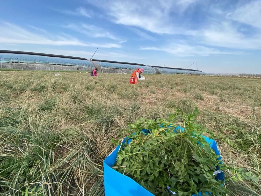 没想到孙博士的藏红花基地,荠菜得到有机肥的滋养,堪称茂密。春风吹过广阔的田野,我们埋头挖的荠菜后来装满了汽车的后备箱……收获多多。