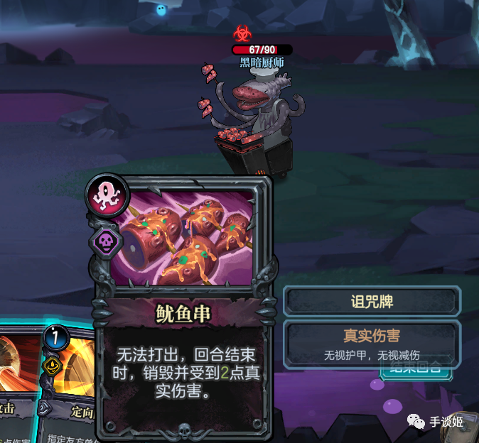 其中的设定也可以看出制作者是花了心思的,比如说这个烤串的章鱼,把自己的脚烤糊了,嫌难吃扔给了我们,成为无法丢弃的手牌。