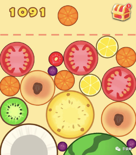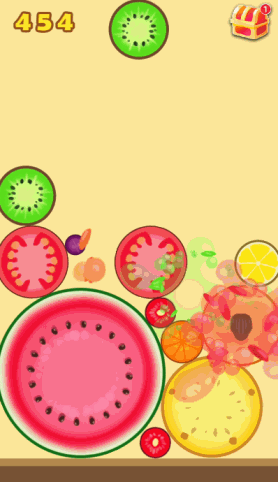 前期合成小水果非常简单,随着水果越来越多,合成得越变越大,空间分配变得困难起来。