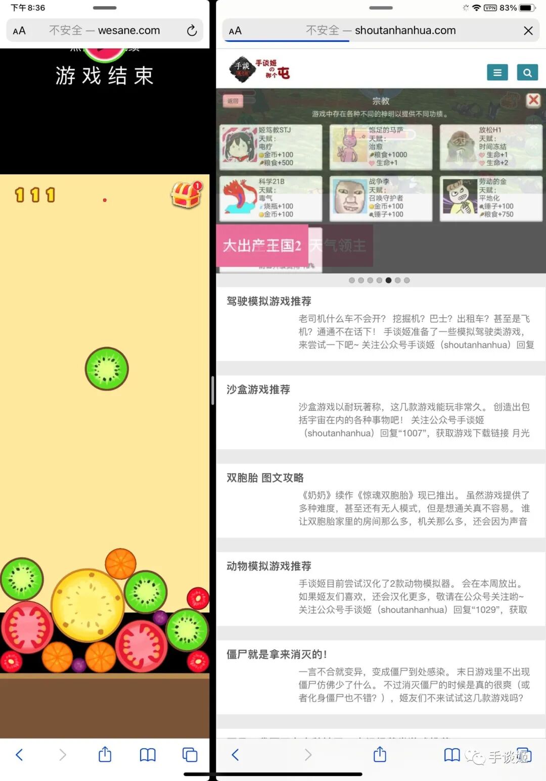 又或者,拥有ipad的姬友们可以通过分屏的功能,得到一个长于普通浏览器的页面,水果的下落高度也会变得更长,也就不容易早早游戏结束了。