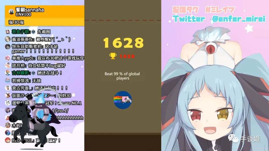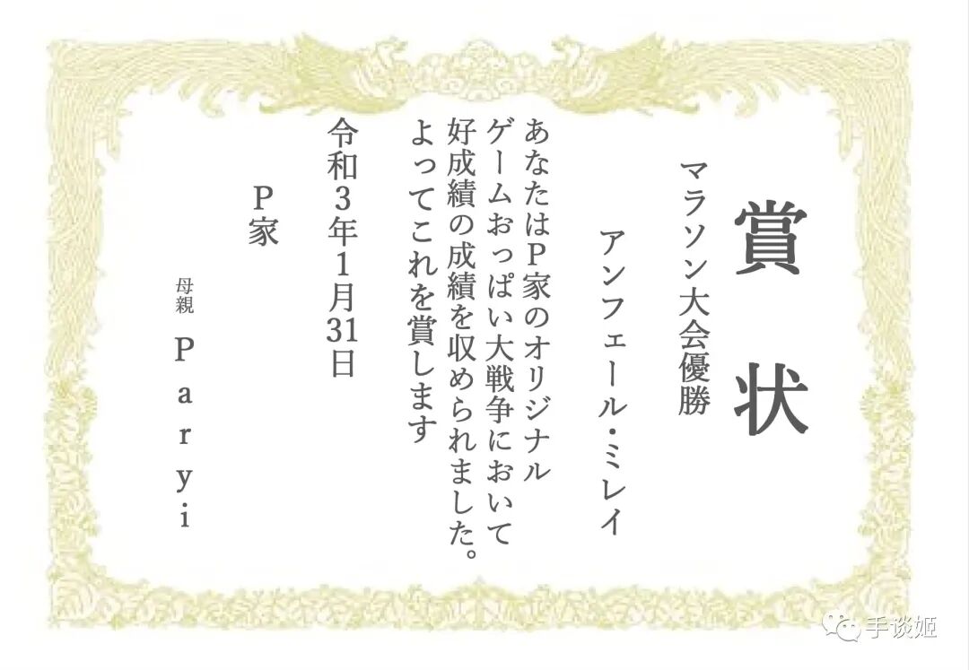 令人生草的是,许多虚拟偶像也玩起了这款游戏,开启了比赛模式,P家头子帕里妈妈还制作了“奖状”给NO.1的咪蕾。