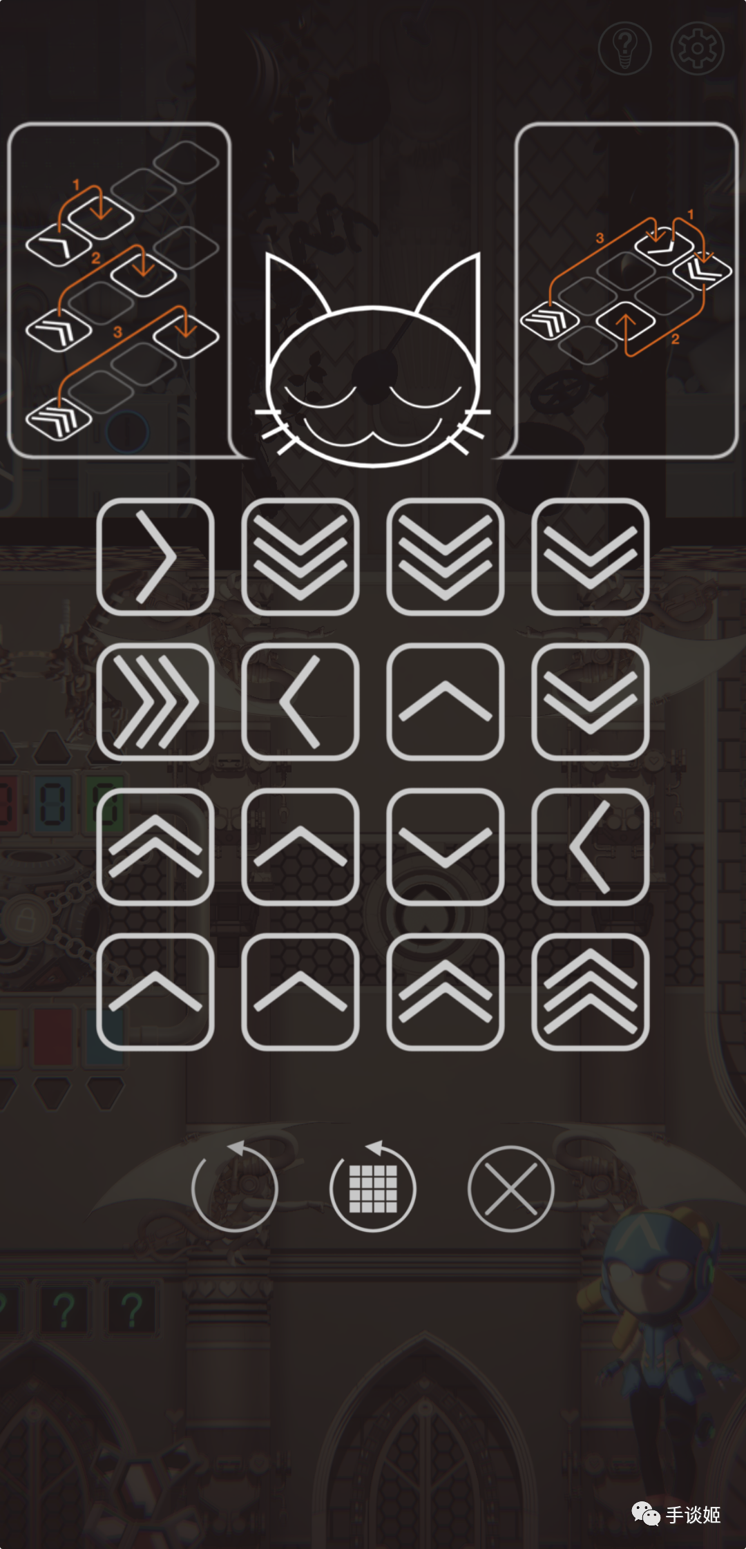 游戏基本上没什么文字语言,就连交互界面也都是图形化来的,莫名产生一股高级感。不过手谈姬在实际操作的时候错按了两次“重玩本关”,半恼。