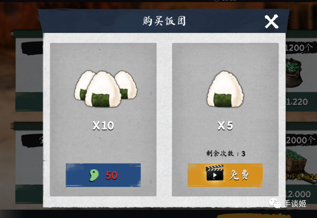 在完成游戏第二幕之后,还会开启“讨伐”模式,即通常手游中的“讨伐”功能。每场战斗和讨伐都会消耗“饭团”,饭团也可以看广告免费获得。