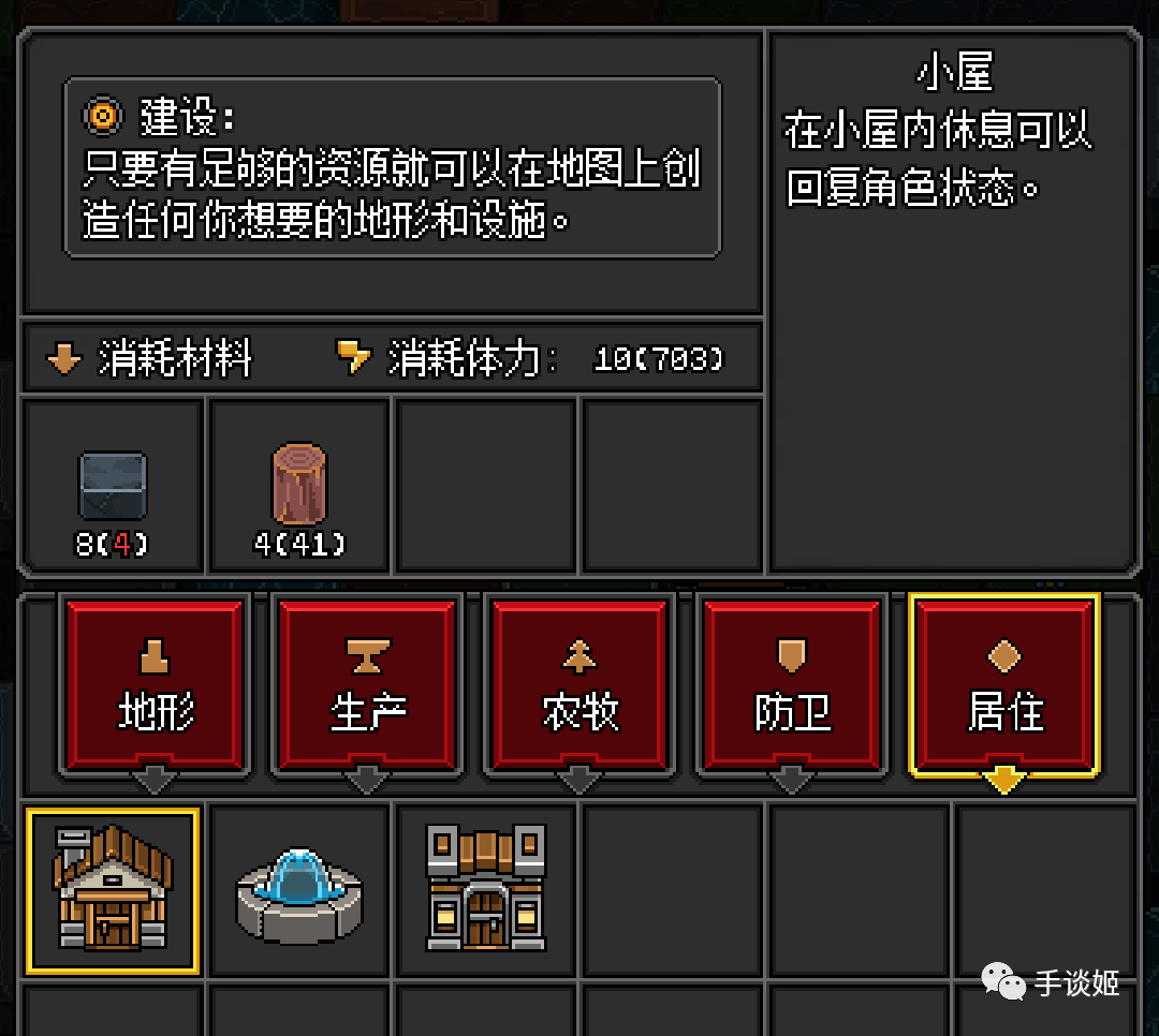 除了人被杀就会死外,游戏中还有“体力”的设定,角色每进行建造、移动等都需要消耗一定的体力。体力过低也会死翘翘。