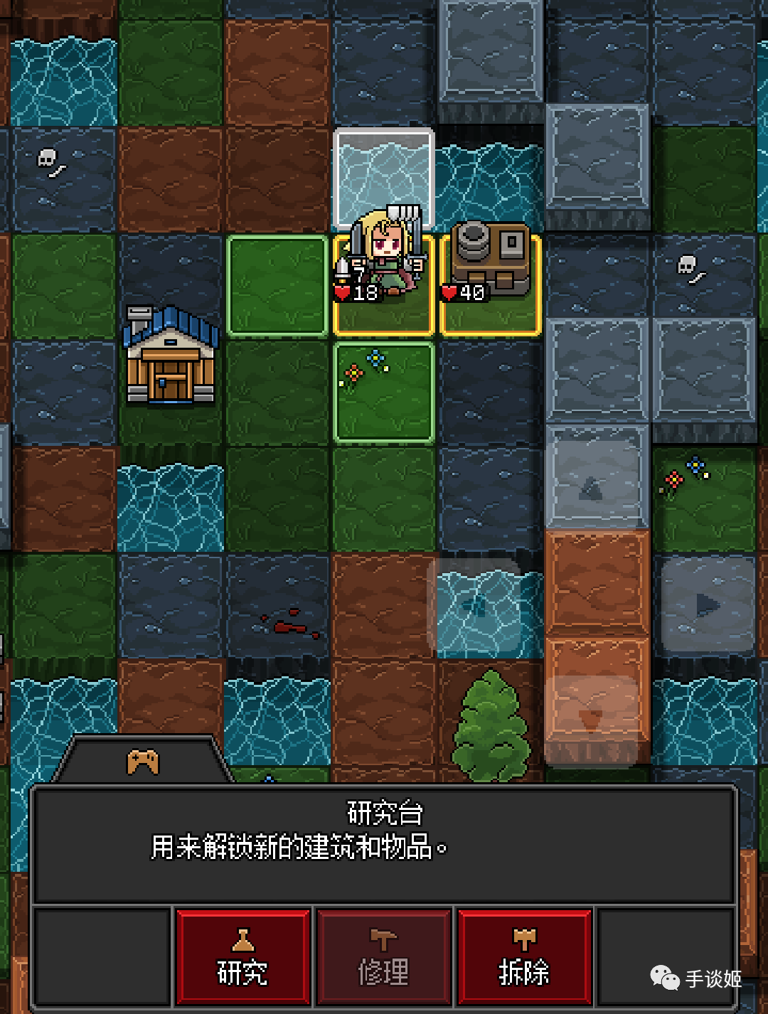 建造系统中的关键是“研究台”,解锁研究台后会有更多的建造道具解锁,想要赶紧过上文明生活,提升科技树,研究台是必不可少的。