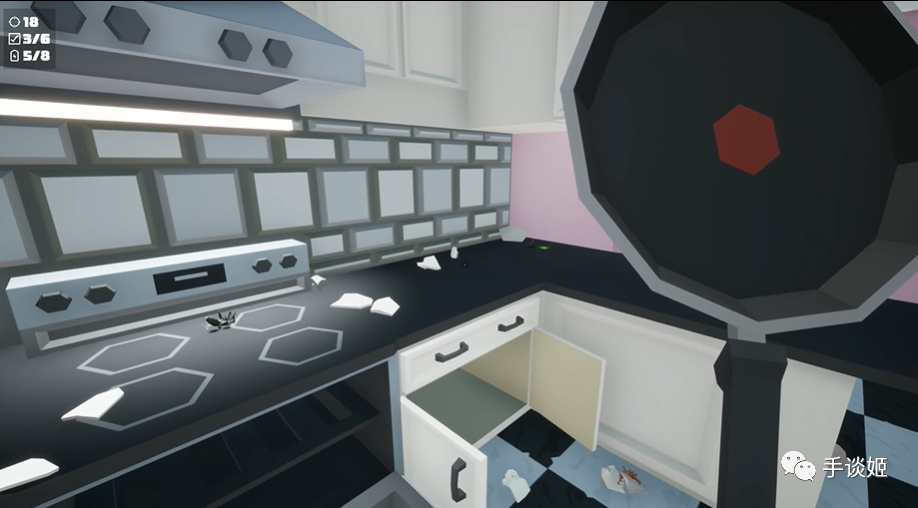 当然,也可以直接顺手拿起柜子上面的花瓶,或者客厅里的电视向蜘蛛直接砸过去,蜘蛛当然就一命呜呼了,但是家也就被拆的差不多了。与其说是打蜘蛛模拟器,倒不如说是拆家模拟器。