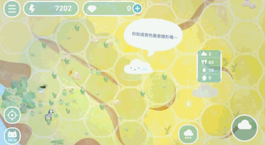 进入游戏,一片荒漠的岛屿展现在玩家眼前。前期玩家要做的就是选择在这片岛上的一片区域下雨。