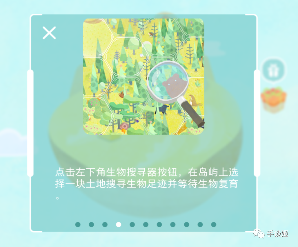随着时间的推移,一些地貌就会诞生新物种。玩家可以通过点击左下角的“搜寻”,通过“放大镜”来找到这些动物。