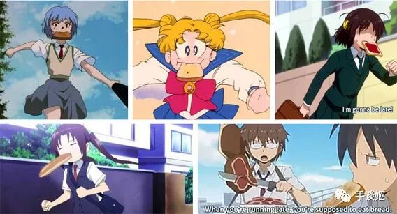 不知多少日本动画里的角色发现自己马上要迟到了,于是一边叼着面包一边跑出门,接着在转角和命中注定之人撞满怀。