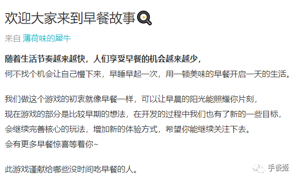 《早餐故事》就是这么一个带有小幽默的治愈游戏,制作者说,这款游戏是想献给那些没时间吃早餐的人。