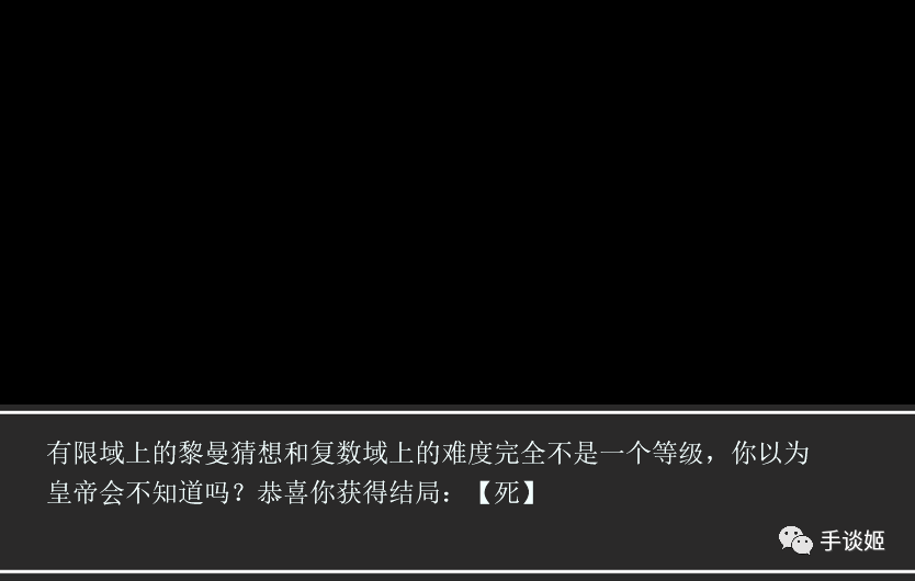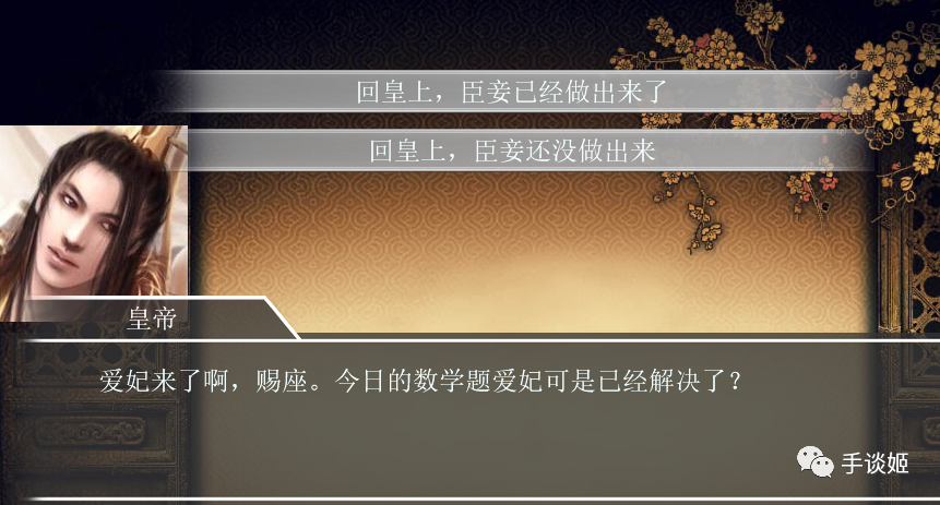 玩到这里,手谈姬大概就了解这个游戏的调性了,这绝必是数学系的理科生来报复社会的,这个世界上的人都是数学大佬,手谈姬稍微回答错误,就会被赐死。