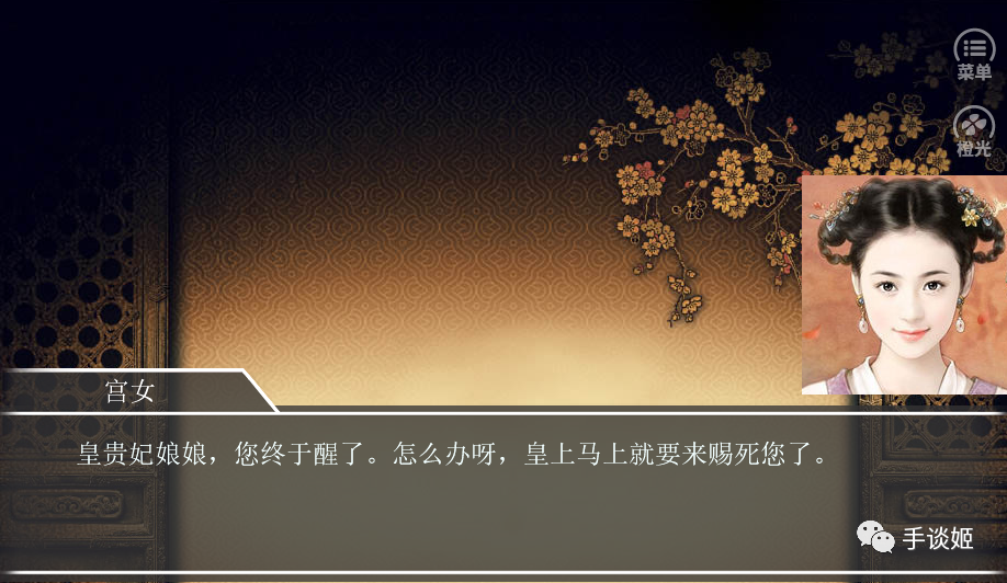 宫女上来对扮演主角的姬说道,自己被安排赐死了。