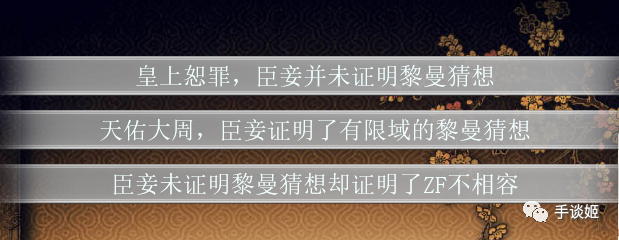 “皇上恕罪,臣妾并未证明黎曼猜想”