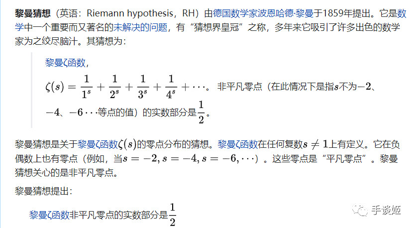 手谈姬搜索了一下什么是黎曼猜想……额,好吧打扰了。