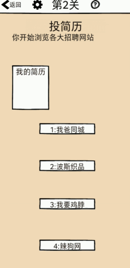 话说现实情况似乎也差不多,没见过谁可以只投一家简历就能行的。游戏中是需要拖动简历的图片到题目上,来模拟“投递”的过程。估计是把简历直接拍到人事部同志的脸上了吧,这下肯定是留下深刻印象了。