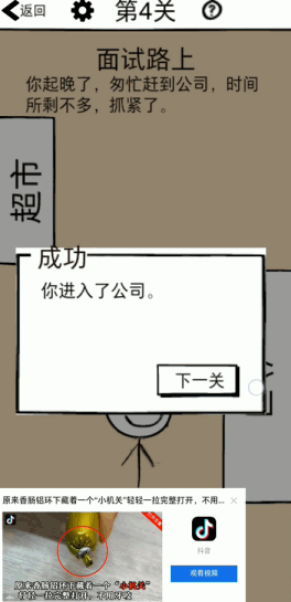这些关卡的剧情是连着的,约定了面试,第四关,主角前往面试地点。