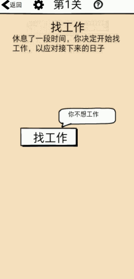 进入第一关,手谈姬就被这选项给整傻了。关卡要求去找工作,但点击“找工作”的选项后,选项却跑到了另一个地方,似乎在逃避着不想工作一样。