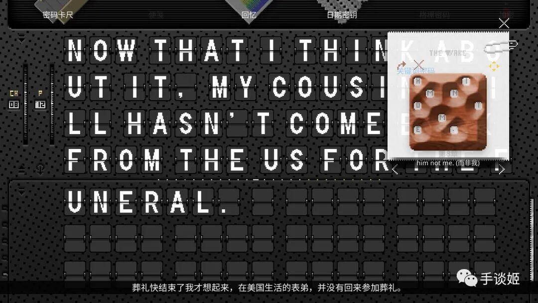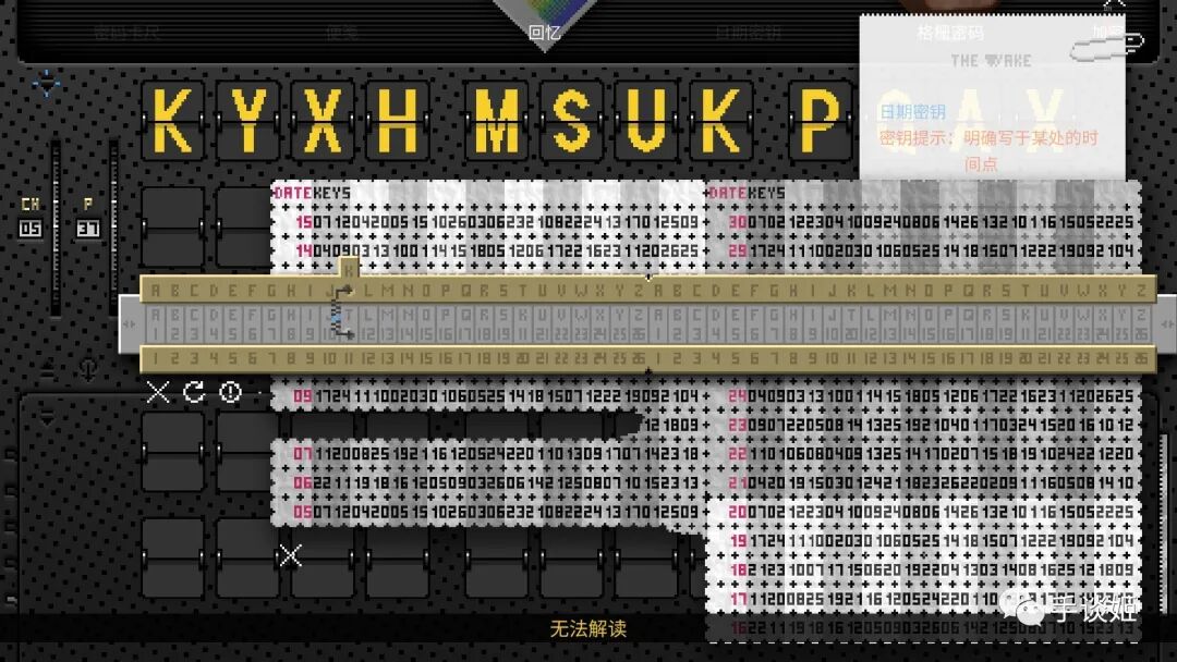 回到游戏上,《TheWake》的解谜就是通过密码机来实现的,玩家需要在游戏中进行密码破译,来让游戏继续进行。