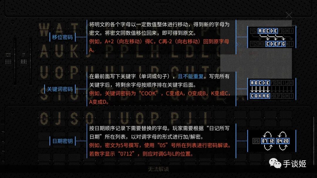 不过作者也没有想要难为大家,在每一个小谜题里面,只需要破译其中的关键词,其他的破译工作游戏就会进行自动破译。(不过还是有些难度,有需要姬友们可度娘攻略)