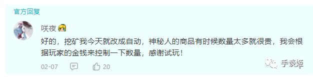 有玩家说游戏中的挖矿收益不大,作者就改成自动挖矿了。