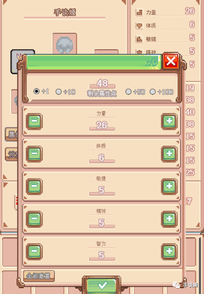 一个比较公认的玩法是把点数全加到敏捷/速度上,倒不是去学梅普露的姬友,敏捷影响着暴击率和攻速,在游戏中还是很重要的。不过开发者表示会调整这一数值,保持游戏的整体平衡。
