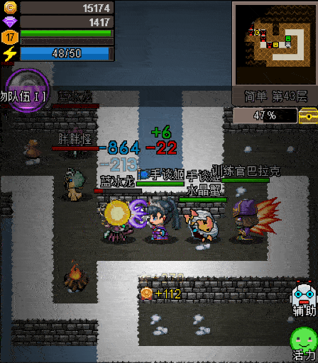 游戏的迷宫是随机生成的,达到一定的层数,还会有boss出现。虽然有数十种迷宫地图风格、上百种怪物,但推图比较单一——冲上去放技能。