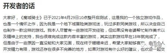 游戏名叫《魔城骑士》,上月末才正式上架。