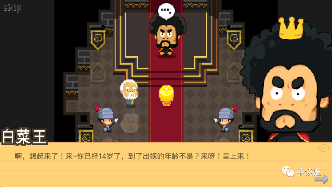 游戏里的小公主特别可爱,性格天真,有点缺根筋。14岁的她到了结婚的年龄,可是小公主不想结婚。