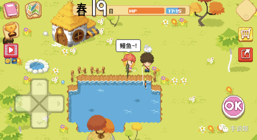 购买钓鱼竿和鱼饵就可以进行钓鱼,到水面处点击ok,等浮漂飘上来再点击ok,鱼就被钓到了,点太快鱼会跑掉。越高级的钓竿鱼饵可以钓到更高级的鱼。