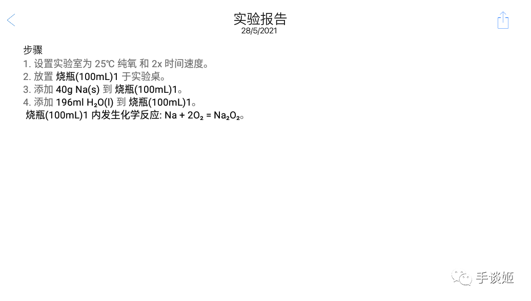 就拿刚刚提到的把Na丢入水中吧,既然是在沙盘中做实验,使用多大的剂量都无所谓了,与其说把Na投到水中,不如说把水倒入到Na中吧。