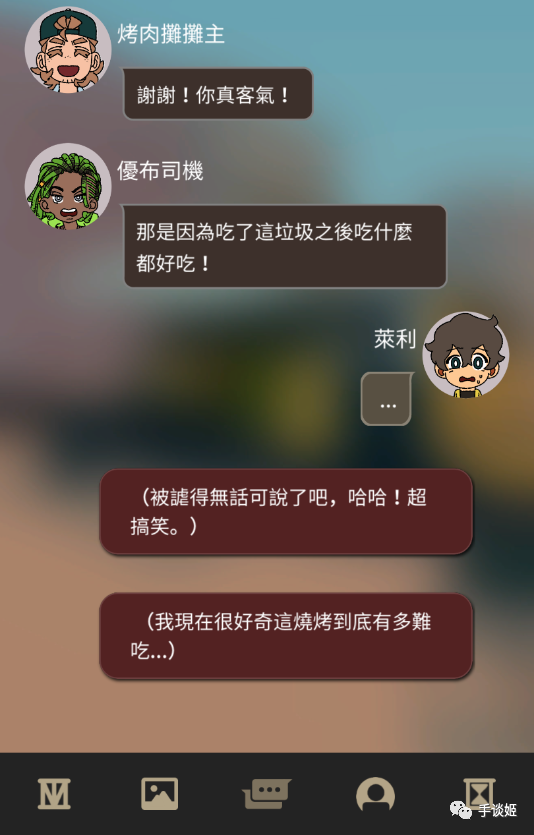 游戏通过聊天框的表现方式来讲述故事,体感上有点像读条漫,角色的夸张表情给游戏带来了不错的演出效果,真要熟悉了这种设定,配合着剧情中出现的危机和恰到好处的配乐,玩起来还是蛮带感的。