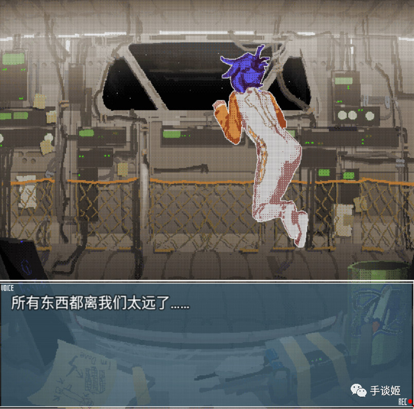 《旅燕归航》的美术也相当“惊艳”,飞船损毁,角色只能局限在这一空间里,对于独立游戏来说相当巧妙,而人物更让人怜爱。