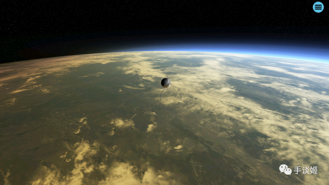 进入游戏的开始界面,可以看到一颗金色的人造卫星在轨道上行进,如果手谈姬没有猜错,这就是人类历史上第一颗进入轨道的人造卫星——斯普特尼克1号了。