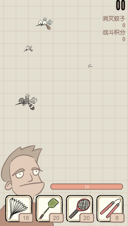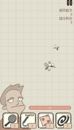 玩家有10滴血的“血量”,也就是说被蚊子吸10下就算是失败了,而蚊子会在靠近玩家后的下嘴之前,先停顿个一定时间,相当于在现实中蚊子停靠在玩家身上的那段时间,这算是打蚊子的最佳时机了,成败在此一举!当然也可以在起飞之前就把蚊子打死,这就是危机管理!