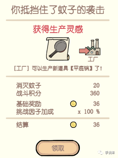 而积分可以在游戏的“工厂”中解锁道具的“生产线”,制造各种打蚊子武器,需要玩家隔一段时间来进行领取。