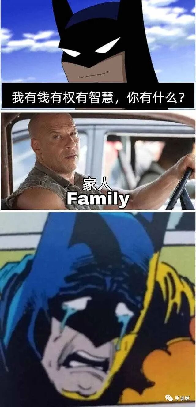 前段时间,电影《速激9》上映,国外流行起了“family”梗——因为电影都拍到第九部了,还全是围绕主角家人展开,当危机出现,主角默念“family",然后呯呯呯哐哐哐,就把危机解除了。