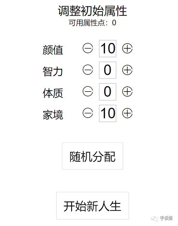 接着是分配初始属性,通常玩家一共有20点点数可以分配,当然也可以点“随机分配”省时间,这里姬选择了和自己相符的颜值,以及感觉会开局不错的家境。
