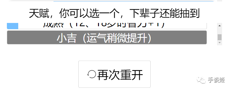 那么,手谈姬今天介绍的就是一个和“人生重来”有关的游戏,名字叫《人生重开模拟器》,是一款网页游戏。