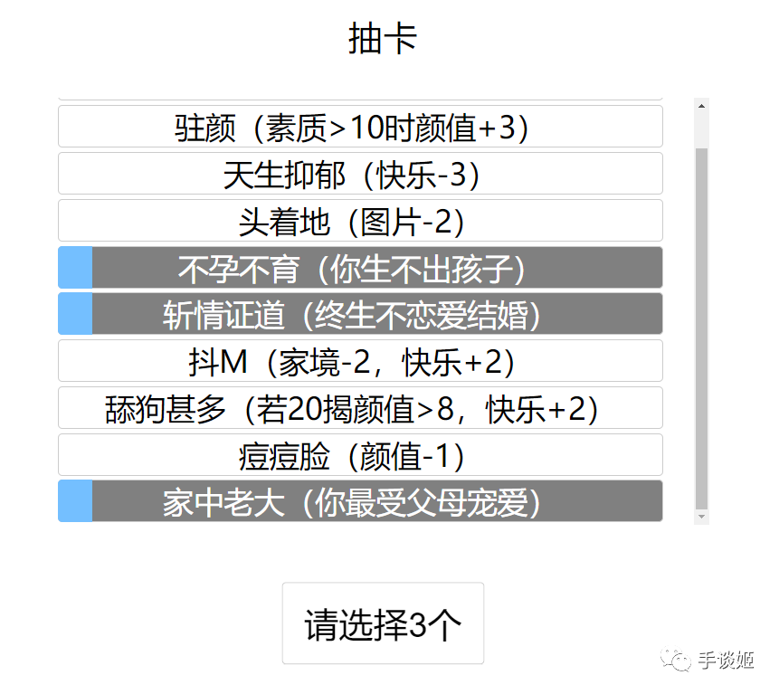 实际演示一下,姬随便选3个天赋……这能算得上是天赋吗?