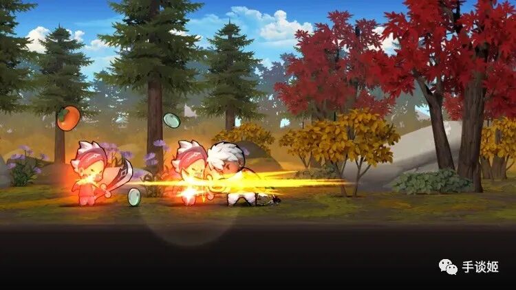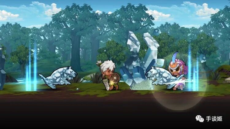 玩法方面比较简单,左手控制人物的左右行走,右手会有各种技能,技能释放有一定CD,如果近距离接触敌人,还会直接跟他们平A互砍。